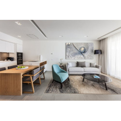 Suiten Deluxe (ca. 65 qm): Verfügen über Bad und Dusche/WC, Föhn, Wohnraum mit Schlafsofa, Schlafzimmer, Küche, Klimaanlage/Heizung, WiFi, Bademantel, Slipper, Sat-TV, Kaffeezubereiter, Mietsafe und Balkon oder Terrasse. Gegen Aufpreis auch mit zwei Schlafzimmern buchbar.