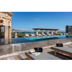 Zudem Zugang zu der wunderschönen gestalteten Dachterrasse (only adults und tagsüber bis 17:30 Uhr nur für Kunden der Juniorsuiten und Juniorsuiten Premium) mit Infinity-Pool, Liegen sowie eine Cocktailbar mit "Alis Rooftop Bar Sitzgelegenheiten.