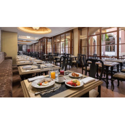Klimaanlage, Babysitter (gegen Gebühr), Gepäckaufbewahrung, Bankettsaal, Bar, Mehrsprachiges Personal, Frühstückssaal, Business-Center, Café, Parkplatz (gegen Gebühr), Geldautomat, Casino, Check-in/out, Konferenzraum, Liegestühle, Aufzug, Wechselstube, Garten, Hallenbad (gegen Gebühr / beheizt), Internetzugang, Wäscherei (gegen Gebühr), Außenpool, Sonnenschirme, Poolbar, Rezeption, Empfangsbereich, Speiseraum, Restaurant (á la carte / Buffet), Zimmerservice (gegen Gebühr), Safe, Snackbar, Solarium (gegen Gebühr), Sonnenterrasse, Terrasse, Tour-Desk, Badetuch, WiFi (ohne Gebühr), Pool, Foyer,