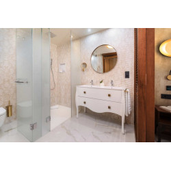 Juniorsuite Deluxe: Gleich ausgestattet wie die Juniorsuite jedoch geräumiger (ca. 32 m²), zusätzlich mit Badewanne und Balkon.