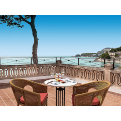Juniorsuite (JS, ca. 35 qm), Klimaanlage (warm/kalt), Minibar (gegen Gebühr), Kaffee-/Teezubereiter, TV (50 Zoll), Telefon, WLAN (inklusive), Safe. Bad oder Dusche, WC, Föhn, Bademäntel, Slipper. Balkon oder Terrasse, Meerblick. Max. 3E