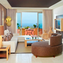 Juniorsuiten (ca. 65 qm): Verfügen bei gleicher Ausstattung wie die Doppelzimmer Deluxe über einen kombinierten Wohn-/Schlafraum und sind geräumiger. Gegen Aufpreis auch mit Meerblick buchbar.