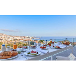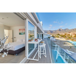 Lage: Das Luxushotel "Hotel Baobab Suites" erhebt sich in elegantem Stil und in moderner Architektur luxuriös über der Prestige-verwöhnten Costa Adeje und bietet seinen Gästen einen einzigartigen Panoramablick auf den atlantischen Ozean. An dem nahegelegenen "Playa del Duque" können Sie sich am hellen Sandstrand erholen und ein vielseitiges Freizeit- und Unterhaltungsangebot genießen. Das Zentrum von Costa Adeje ist ca. 500 m, der Flughafen Teneriffa Süd ca. 25 km und die nächste Bushaltestelle ca. 400 m entfernt. Das Hotel bietet ein gratis Transfer zum Strand "Playa del Duque" (zwischen 9-17 Uhr).