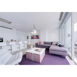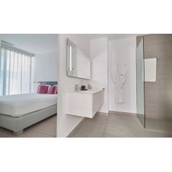 Standardsuite 1 Schlafzimmer (ca. 66 m²): Alle Suiten (Größe und Gestaltung variieren) sind luxuriös und hochwertig eingerichtet. Sie verfügen über eine geräumige Terrasse mit Designermöbeln der Marke "Gandía Blasco", über eine offene, vollausgestattete Küche mit großem Kühl- und Gefrierschrank, Spülmaschine, Induktionsherd. Ofen/Mikrowelle, Full HD-LED-TV mit 3D-Experience, Direktwahltelefon, Safe, Badezimmer mit Haartrockner und Pflegeprodukte von "Rituals", WC, Rainshowerdusche, teilweise Badewanne, Bademäntel, ein Schlafzimmer und Klimaanlage. Die Wi-Fi-Benutzung ist kostenfrei. In allen Suiten stehen zusätzlich Bügeleisen, Bügelbrett und Waschmaschine/Wäschetrockner zur Verfügung. Die Zimmer liegen zur Landseite (S2-Divinity Eden).