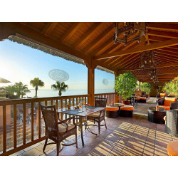 Wohnen: Deluxe-Zimmer (DZG, ca. 37 qm), Klimaanlage, Minibar (geg. Geb.), Kaffeeservice, TV, Telefon, WLAN, Safe. Bad, Dusche, WC, Föhn, Bademantel, Slipper. Terrasse mit Gartenblick, wahlw. Meerblick (DZM). Max. 3E, zur Alleinnutzung buchbar (DEM)