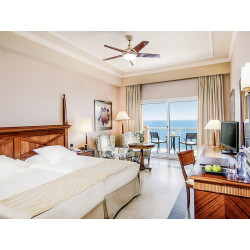 Prestige-Zimmer (DZP, ca. 37 qm), Klimaanlage, Minibar (geg. Geb.), Kaffeeservice, TV, Telefon, WLAN, Safe. Bad, Dusche, WC, Föhn, Bademantel, Slipper. Terrasse mit Meerblick, Extras wie täglicher Zutritt zum Thalasso-Spa, Wasser, Kaffee-/Teezubereiter, Erfrischungsgetränke in der Minibar, Frühstückszimmerservice (auf Vorbestellung). Max. 3E