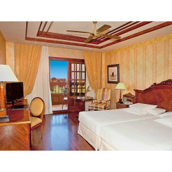 Ausstattung: Luxuriöses Golfhotel im kanarischen Baustil mit Golf-Clubhaus, Swimmingpool (beheizbar), Sonnenterrasse, Liegen und Schirmen. Empfangshalle mit Rezeption, Internetecke, Restaurant, Pianobar und Cafeteria mit Terrasse. Weinkeller, Bibliothek mit TV-Ecke, Golfboutique und Wäscherei. Landeskat.: 5 Sterne, 61 Zimmer, 2 Etagen, 1 Lift.