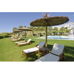 Luxuriöses und elegantes Golfresort im andalusischen Stil im Herzen von Cádiz. Restaurant mit Terrasse und Blick auf den Golfplatz sowie auf das Naturschutzgebiet Los Alcornocales.