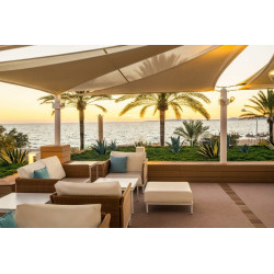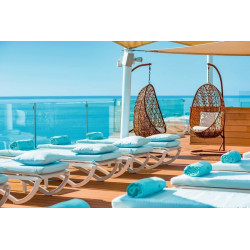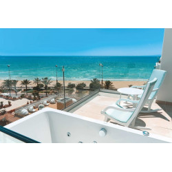 Juniorsuite Star Prestige Meerblick: Bei gleicher Ausstattung wie die Juniorsuiten bieten diese einen Star Prestige-Service (buchbar ab 16 Jahren): Die Zimmer bieten einen eigenen Jacuzzi, VIP-Annehmlichkeiten, Minibar (gegen Gebühr), gratis Zugang zur Sonnenterrasse auf der 8. Etage, Ermäßigungen für den Spa sowie Late-Check-out nach Verfügbarkeit (bis 14 Uhr). Die Zimmer bieten zudem Meerblick.