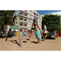 Ausstattung: Insgesamt 40 Appartements verteilt auf 5 Etagen, ein Swimmingpool (im Winter beheizbar) mit Sonnenliegen, ein separates Kinderbecken, Poolbar, eine Rezeption (stundenweise besetzt), ein Lift, Internetecke und Wi-Fi gratis.