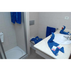 Appartements: Die Appartements sind einfach eingerichtet mit kombiniertem Wohnraum (Schlafgelegenheit für die 5. Person) mit Kitchenette (Toaster, Kaffeemaschine, Wasserkocher, Mikrowelle, Kühlschrank), 2 separaten Schlafzimmern, Klimaanlage (Zentralgesteuert, saisonaler Betrieb), Sat.-TV (gratis), Mietsafe (gegen Gebühr), Badezimmer mit Dusche/WC mit Föhn sowie möbliertem Balkon oder Terrasse.