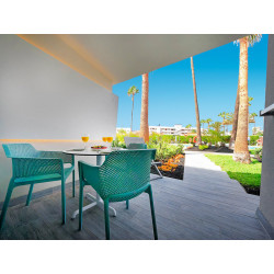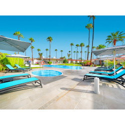 In der renovierten, kleinen Ferienanlage genießen Sie entspannte Urlaubstage im Herzen von Playa del Inglés. Der schöne Garten mit Pool und vielen Palmen bietet viel Platz zum Relaxen.