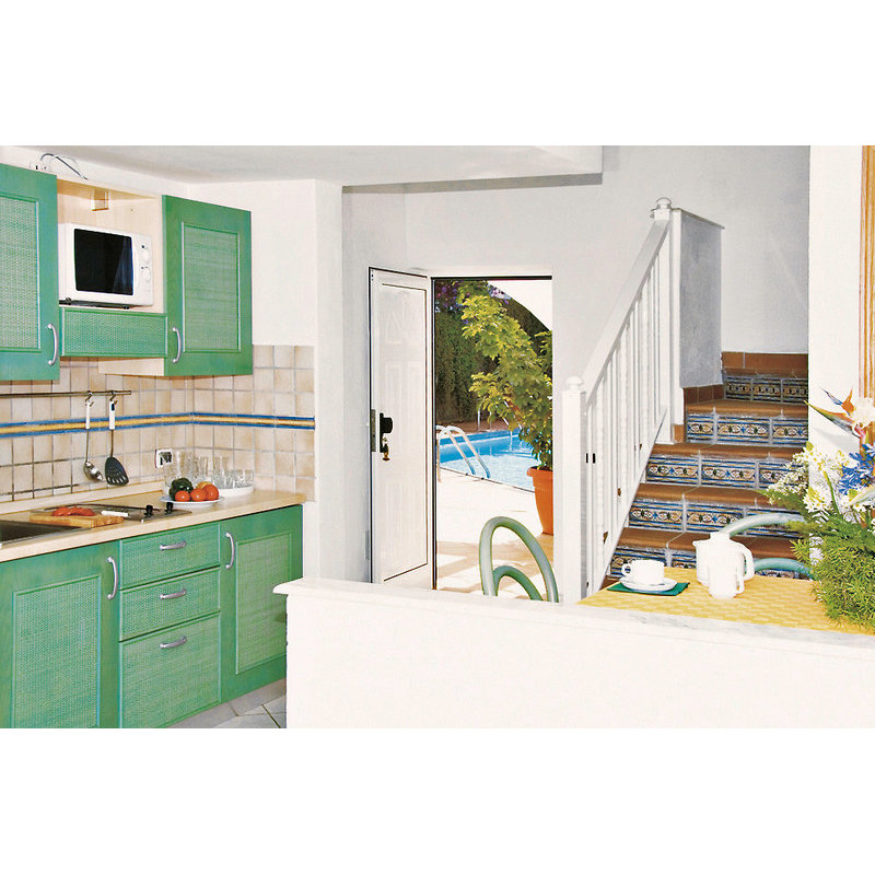 - Nebengebäude, kombinierter Wohn-/Schlafraum, 1 Bad, Dusche, WC, Haartrockner, Safe (kostenpflichtig), 1 TV (Sat-TV), Kochnische, Balkon oder Terrasse (möbliert), Bettwäschewechsel (1 x wöchentlich), Handtuchwechsel (3 x wöchentlich)