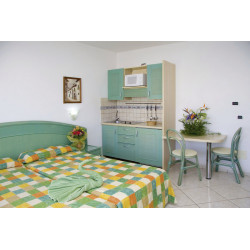 Die auf einer leichten Anhöhe gelegene Anlage eröffnet einen herrlichen Blick auf den Strand und das Meer. Gäste schätzen den Komfort und die familiäre Atmosphäre der geräumigen Studios und Appartements.