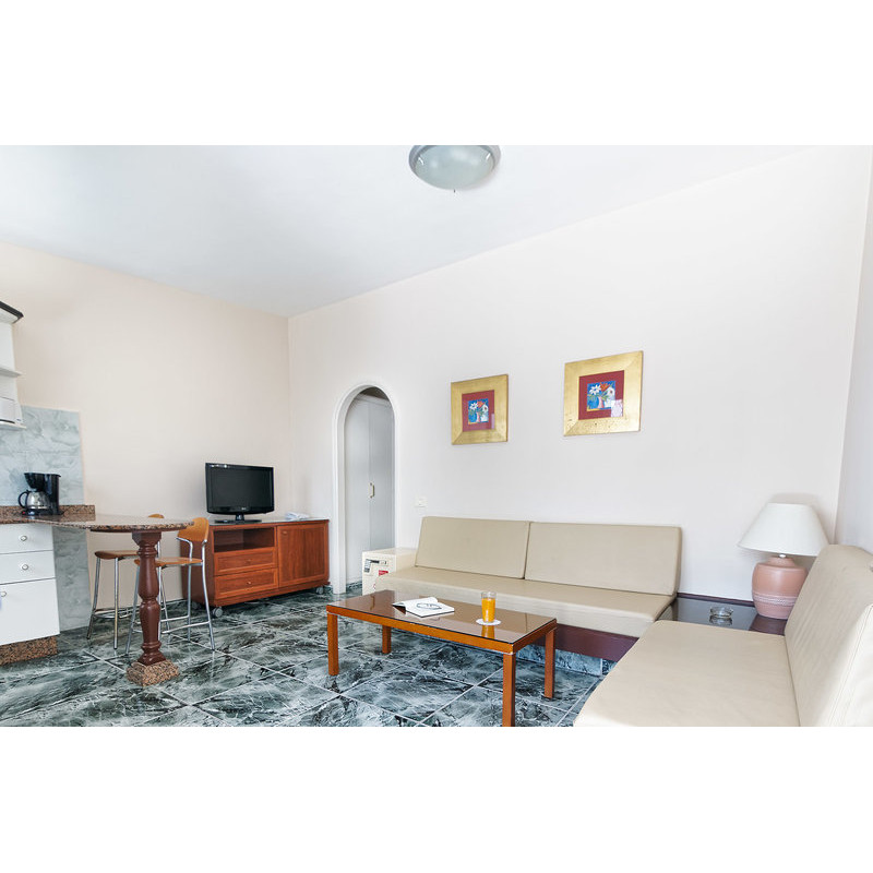 Mit Wohnraum, Doppelbett, Babybett (kostenlos), gefliestem Boden, Gemeinschaftspool, Wasserkocher (kostenlos), Safe (geg. Gebühr) und Sat-TV. Badezimmer mit Dusche (Größe: 45 m²).