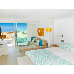 Deluxe-Juniorsuite (JD, ca. 45 qm, oberste Etage), Klima, TV, WLAN, Minibar (gefüllt bei Anreise), Safe. DU/WC, Föhn. Balkon mit Blick auf die Dünen und das Meer. Zusätzlich 1x pro Person/Woche Abendessen im Restaurant "Gastronomic Arena" inkl. Wein, 1x pro Person/Aufenthalt Sauna und Massage, Aufdeckservice. Max. 3E, zur Alleinnutzung buchbar (JDE)