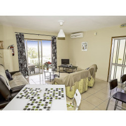 Wohnen: Bungalow Typ C (BUC, ca. 70 qm), Wohnraum, 2 separate Schlafzimmer, Kitchenette, Esstheke, Klimaanlage/Heizung (gegen Gebühr), TV, WLAN, Safe. Bad/Dusche, WC, Föhn. Große Terrasse mit Meerblick. Max. 5E, zur Alleinnutzung buchbar (BUE)