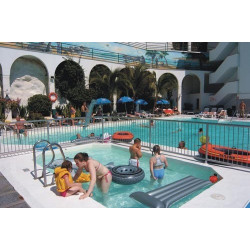 Die im Jahr 2005 renovierte Anlage verfügt über insgesamt 184 Appartements, die sich auf 5 Etagen verteilen. Zu den Einrichtungen zählen ein Empfangsbereich mit Rezeption, WLAN (gegen Gebühr), Mietsafe, Lift, TV-Lounge, Restaurant und Bars sowie ein Wäscheservice (gegen Gebühr) und ein Minimarkt. Im Außenbereich befinden sich ein Salzwasserswimmingpool, ein separates Kinderbecken, Sonnenterrasse und eine Pool-/Snackbar. Liegen und Schirme stehen Ihnen am Pool kostenfrei zur Verfügung.