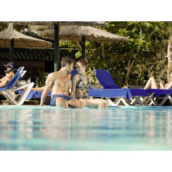 Ausstattung: Großzügige, gut ausgestattete Ferienanlage mit Haupthaus und mehreren Wohngebäuden im Bungalowstil innerhalb eines ca. 53.000 qm großen Gartens. Rezeption, TV, Lobbybar mit Terrasse u. Meerblick. Neu gestaltetes Restaurant mit Außenterrasse und Meerblick, Showraum, Innenbühne. Große Poollandschaft, über mehrere Ebenen angelegte Sonnenterrassen, Liegen und Schirme inkl. (Badetücher gegen Kaution/Wechsel geg. Gebühr), Pool-/Snackbar mit Sitzterrasse, Amphitheater. Im oberen Teil der Anlage ein weiterer Pool mit Sonnenterrassen, Pool-/Snackbar mit Sitzterrasse und Meerblick. Basis-WLAN (inklusive). Landeskategorie: 4 Sterne. 385 Wohneinheiten, 4 Etagen, Lifte.